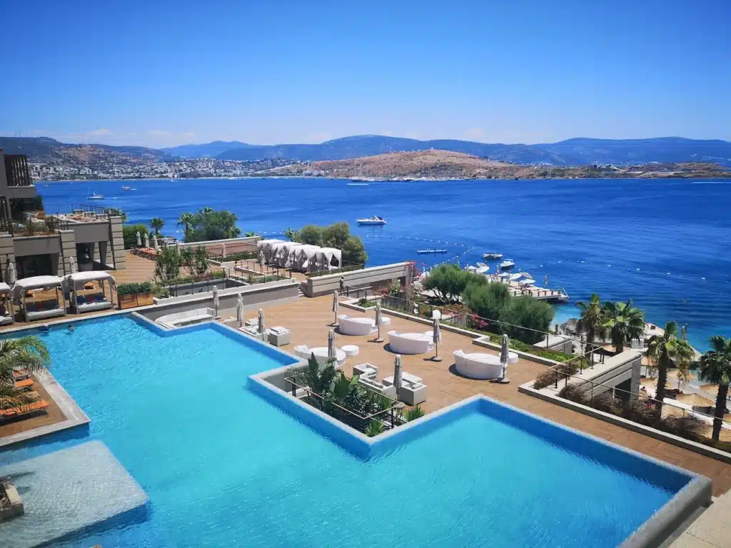 The resort sits on a private cove on the Aegean coast, offering breathtaking panoramic views of the sea — a naturally beautiful backdrop for your ceremony, wedding photos, and sunset receptions. That iconic Bodrum landscape adds true destination wedding magic.